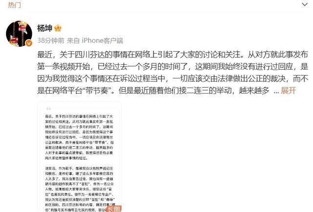 与网红打二审官司 老杨也曾有段一段巅峰期,但让他这么一大把年纪再次火出圈的并不是歌曲,而是那些频频登上热搜的争议事件。 其中和网红“四川芬达”的官司,在网上闹得是沸沸扬扬的,而最近他们之间的纠纷一审已经结束,二审也在本月的十八号正式开庭。